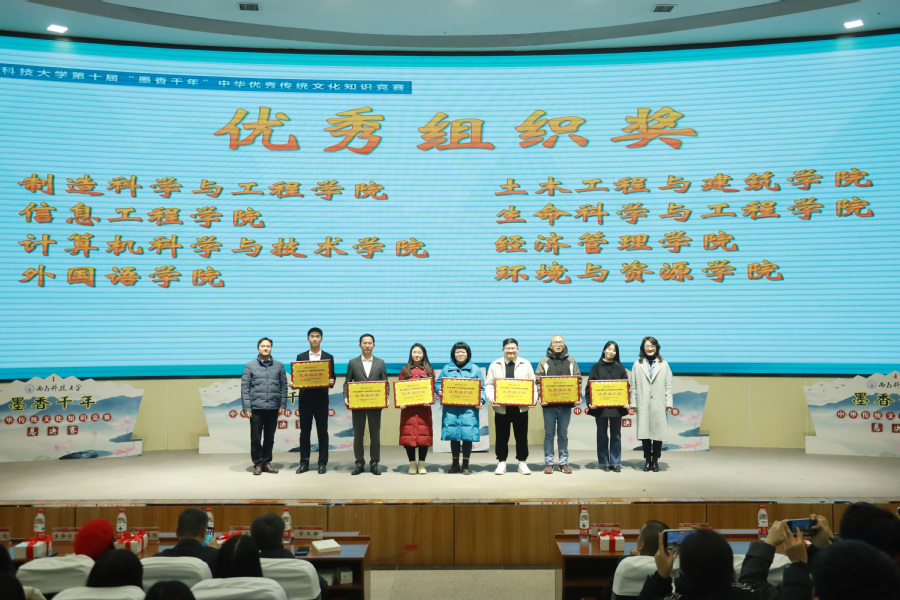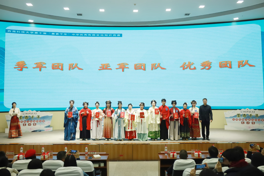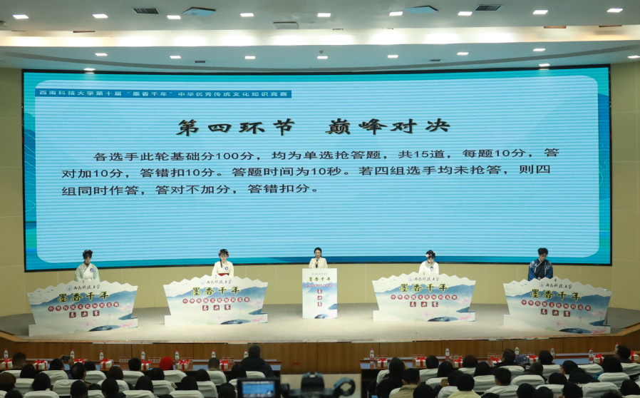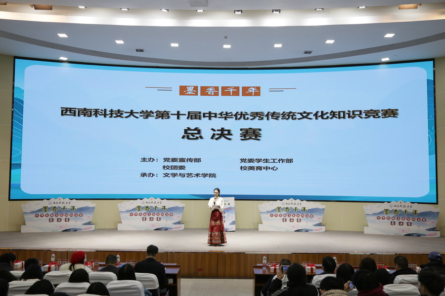 12月15日晚,西南科技大學(xué)第十屆“墨香千年”中華優(yōu)秀傳統(tǒng)文化知識競賽總決賽在辦公樓學(xué)術(shù)報告廳舉行。學(xué)校黨委副書記、紀(jì)委書記肖必恒出席活動并頒獎。學(xué)校相關(guān)職能部門負責(zé)人及各學(xué)院分管領(lǐng)導(dǎo)、師生代表600余人觀摩比賽。