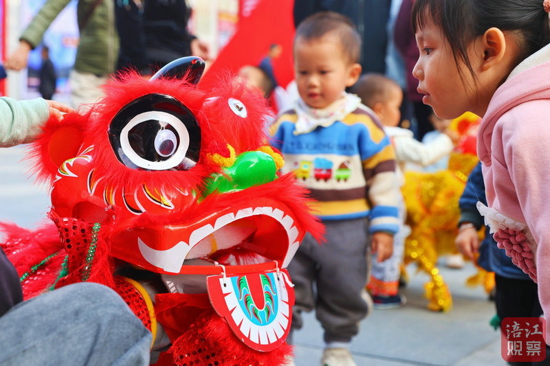 臺上,兩只金峰雄獅跟著鼓聲節(jié)奏,不時做著搖頭、眨眼等動作,舞出非遺新風采。