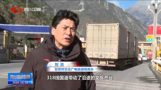 甘孜州文化廣電旅游局局長(zhǎng) 劉洪:318線國(guó)道帶動(dòng)了沿途的文旅產(chǎn)業(yè),也就是我們的路衍經(jīng)濟(jì),1月份到11月份,我們甘孜州共接待游客4200多萬(wàn)人次,帶動(dòng)了旅游綜合收入465.89億元,創(chuàng)了歷史新高,也帶動(dòng)了群眾致富增收。