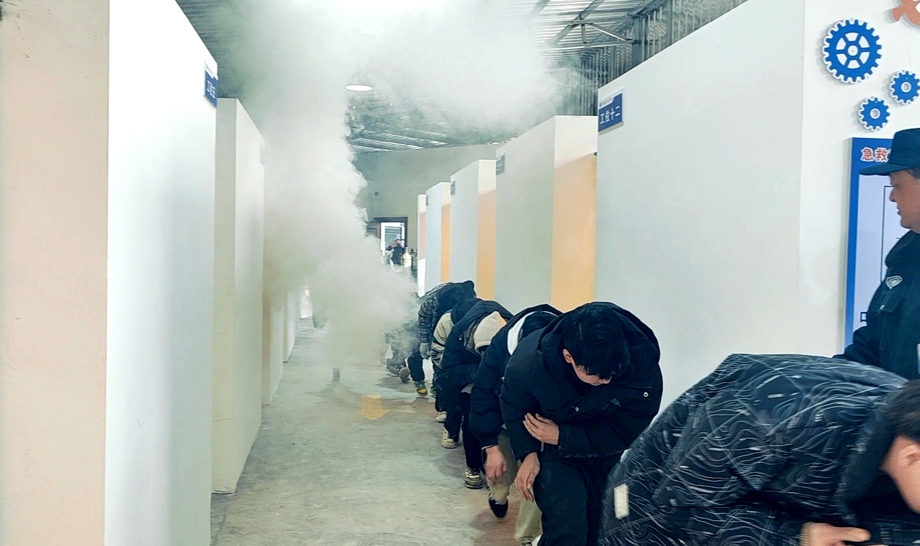 模擬火災(zāi)發(fā)生演練開始,焊接實(shí)訓(xùn)室內(nèi)的學(xué)生和安保人員聽到警報(bào)聲和指令后迅速響應(yīng),按照應(yīng)急預(yù)案上的疏散要求有序撤離,學(xué)生們在安保人員的引導(dǎo)下,迅速而安全地到達(dá)指定的安全區(qū)域。