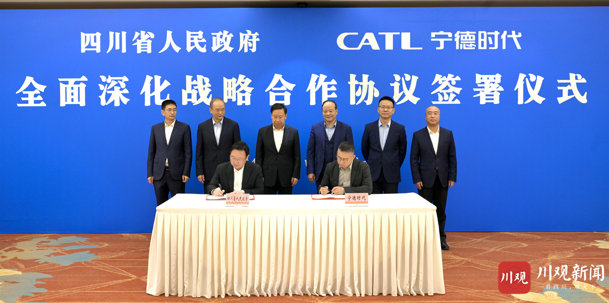 1月31日,四川省人民政府與寧德時代新能源科技公司在成都簽署全面深化戰(zhàn)略合作協(xié)議。省委書記、省人大常委會主任王曉暉,省委副書記、省長黃強(qiáng)會見寧德時代新能源科技公司董事長曾毓群一行,并共同見證協(xié)議簽署。
