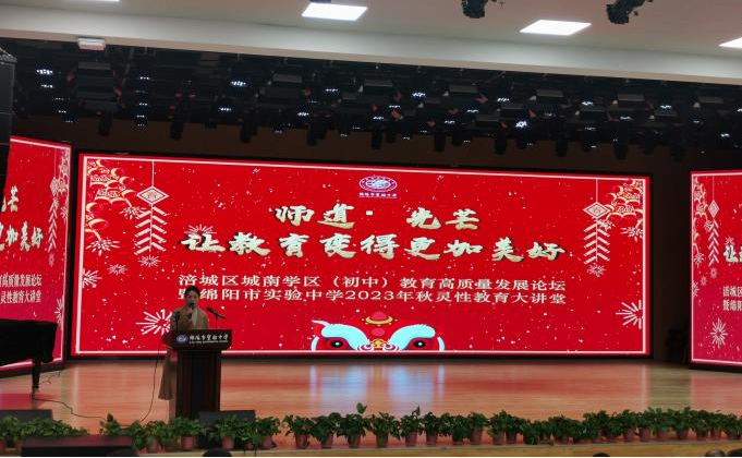 眷眷之心,掌燈引渡,循著光的方向前行。為了進(jìn)一步提高教師隊(duì)伍素養(yǎng)、不斷推動(dòng)教育高質(zhì)量發(fā)展,1月28日上午8時(shí)30分,涪城區(qū)城南學(xué)區(qū)(初中)教育高質(zhì)量發(fā)展論壇暨綿陽(yáng)市實(shí)驗(yàn)中學(xué)2023年秋靈性教育大講堂活動(dòng)在南河校區(qū)學(xué)術(shù)廳隆重召開(kāi)。本次論壇由綿陽(yáng)市實(shí)驗(yàn)中學(xué)教科室主任肖靜主持,共有來(lái)自綿陽(yáng)市實(shí)驗(yàn)中學(xué)、綿陽(yáng)六中、綿陽(yáng)九中、綿陽(yáng)十五中、楊家中學(xué)初中部400余名教師參加。