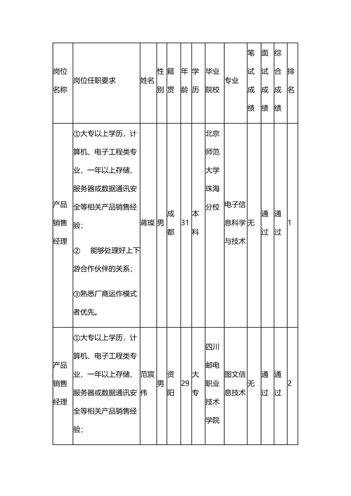 根據(jù)四川長虹佳華信息產(chǎn)品有限責(zé)任公司發(fā)布的招聘公告及招聘相關(guān)規(guī)定,經(jīng)筆試、面試等程序,現(xiàn)將筆試(面試)成績予以公示。