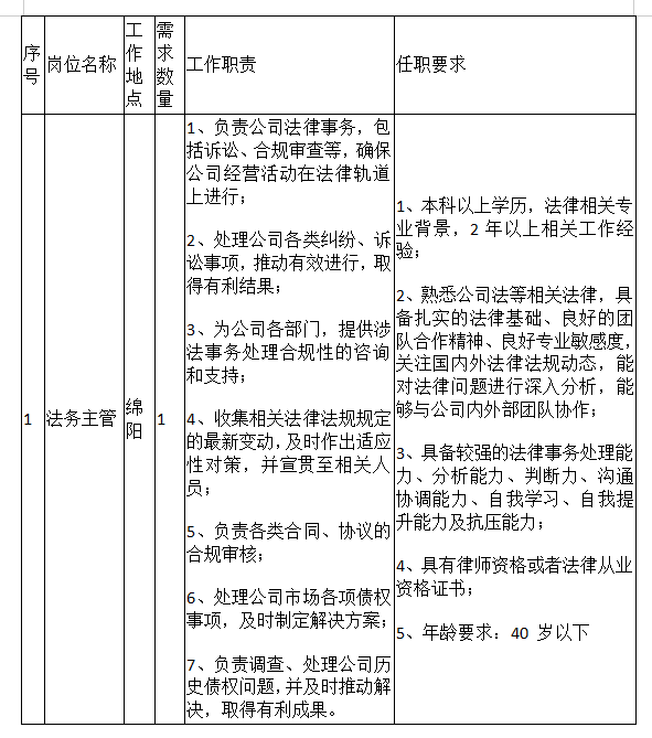 根據(jù)公司經(jīng)營發(fā)展需要,面向社會公開招聘以下崗位: