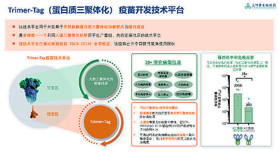“三葉草生物以源頭創(chuàng)新為根本,聚焦呼吸道疫苗產(chǎn)品,相信厚積薄發(fā)的力量。作為本土創(chuàng)新企業(yè),三葉草生物肩負(fù)社會(huì)責(zé)任,以創(chuàng)新型疫苗產(chǎn)品護(hù)佑大眾、助力中國和全球健康。”三葉草生物的首席執(zhí)行官兼執(zhí)行董事梁果先生接受采訪時(shí),所言句句可見創(chuàng)新企業(yè)家身上愿以創(chuàng)新力量反哺社會(huì)、守護(hù)大眾的真誠責(zé)任感。“三葉草生物堅(jiān)持源頭創(chuàng)新的根本是基于我發(fā)明的蛋白質(zhì)三聚體化(Trimer-Tag)疫苗研發(fā)平臺(tái),是利用人體天然蛋白質(zhì)三聚體標(biāo)簽,分泌性表達(dá)二硫鍵共價(jià)穩(wěn)固的類天然病毒三聚體抗原的技術(shù)”,三葉草生物的創(chuàng)始人、董事長和首席科學(xué)官梁朋博士解釋道,“眾多侵?jǐn)_人類的RNA病毒(諸如新冠病毒、呼吸道合胞病毒、流感病毒、狂犬病病毒等)表面抗原均以天然三聚體結(jié)構(gòu)形式呈現(xiàn),而Trimer-Tag技術(shù)的精髓正來自人體最豐富的膠原蛋白三聚體結(jié)構(gòu),它可使任意目的融合蛋白三聚體化,從而獲得穩(wěn)定的類天然三聚體結(jié)構(gòu)的病毒表面抗原;加之人源性帶來良好的安全特性,Trimer-Tag技術(shù)于重組疫苗的開發(fā)上具有極強(qiáng)的通用性。”梁朋博士補(bǔ)充道,“除了我們自研并已經(jīng)商業(yè)化的新冠疫苗,同樣基于Trimer-Tag技術(shù)平臺(tái)自主研發(fā)的處于臨床Ⅰ期的RSV疫苗前景也被業(yè)界看好。”梁博士耐心的講解,難掩他對科學(xué)探索的執(zhí)著以及對來之不易研發(fā)成果的珍視,“在三葉草生物,我們從未停止過在研發(fā)方面的探索,所謂源浚者流長,根深者葉茂,源頭創(chuàng)新是我們的根。”
