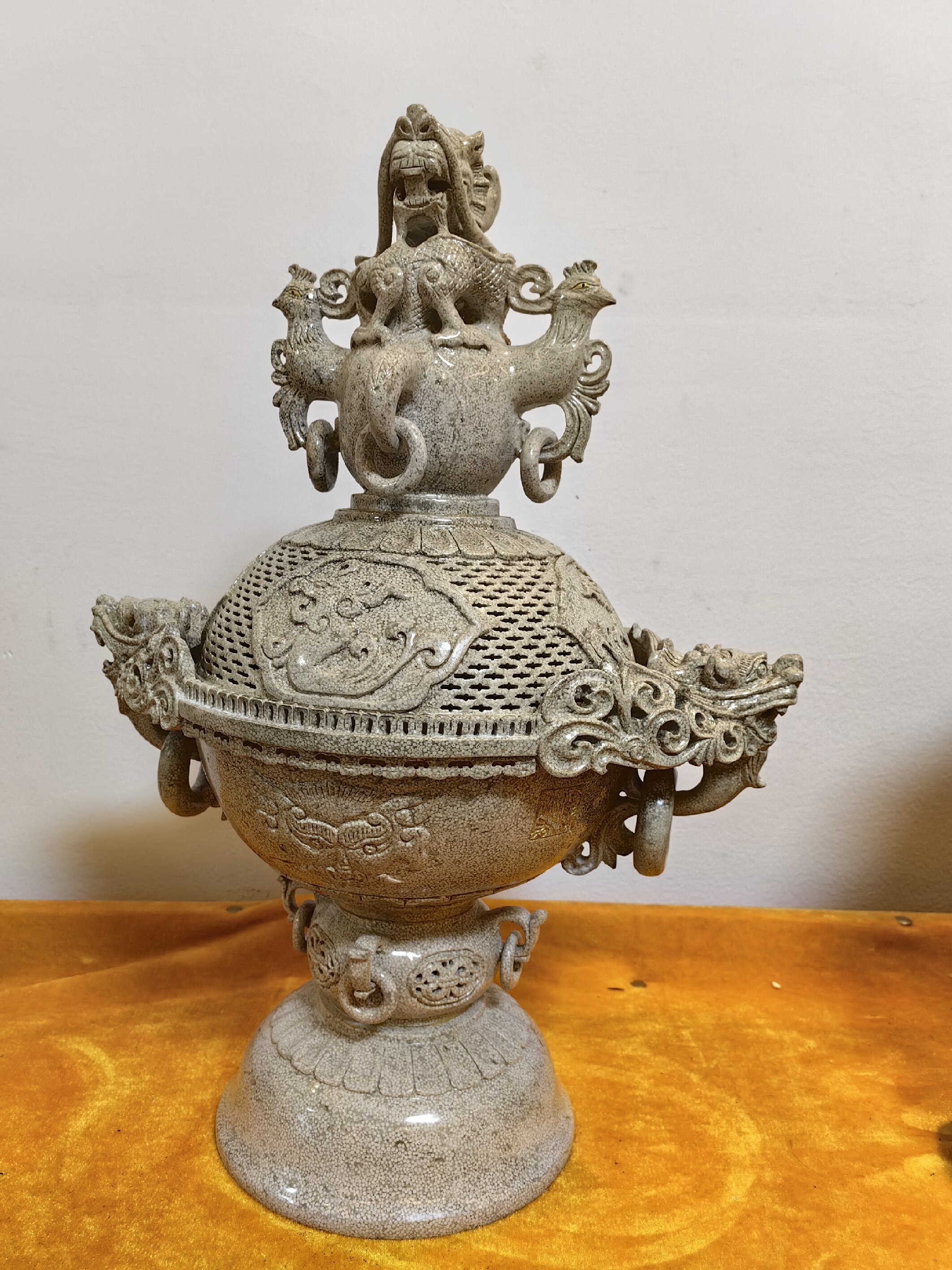 玉龍化石雕刻《龍鳳花熏》(局部)