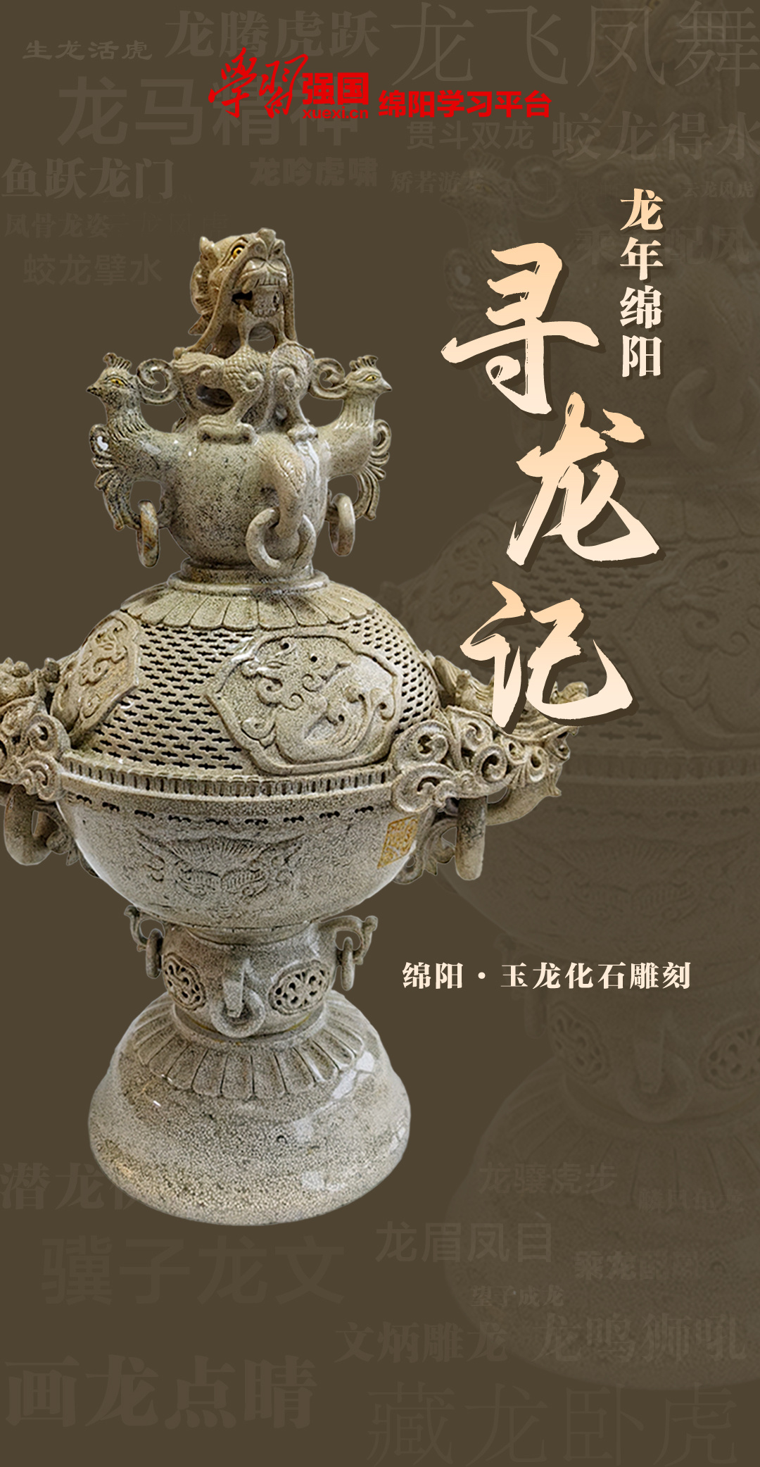 編者按:古老的東方有一條龍,它的名字就叫中國(guó)。古老的東方有一群人,他們?nèi)际驱埖膫魅?hellip;…龍,氣宇軒昂,是中華民族的吉祥圖騰,也是中華民族精氣神的象征,更是凝聚中華民族情感的媒介。綿陽(yáng),建城兩千多年來(lái),綿延不息,蓬勃向陽(yáng),龍的傳人的自信與勇氣滿滿。這里有李白、歐陽(yáng)修的筆走龍蛇,更有“兩彈一星”的龍?bào)J虎步,還有歷經(jīng)千年沉淀下來(lái)的龍文化!“學(xué)習(xí)強(qiáng)國(guó)”綿陽(yáng)學(xué)習(xí)平臺(tái)推出《龍年綿陽(yáng)“尋龍記”》專欄,一起來(lái)尋龍!愿你龍行龘龘,前程?hào)T朤!