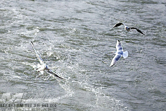 涪江江面紅嘴鷗悠閑翻飛(姜融 攝)