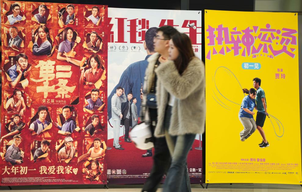 這是2月17日,在沈陽一家影院,觀眾從海報(bào)前經(jīng)過。新華社記者李鋼攝