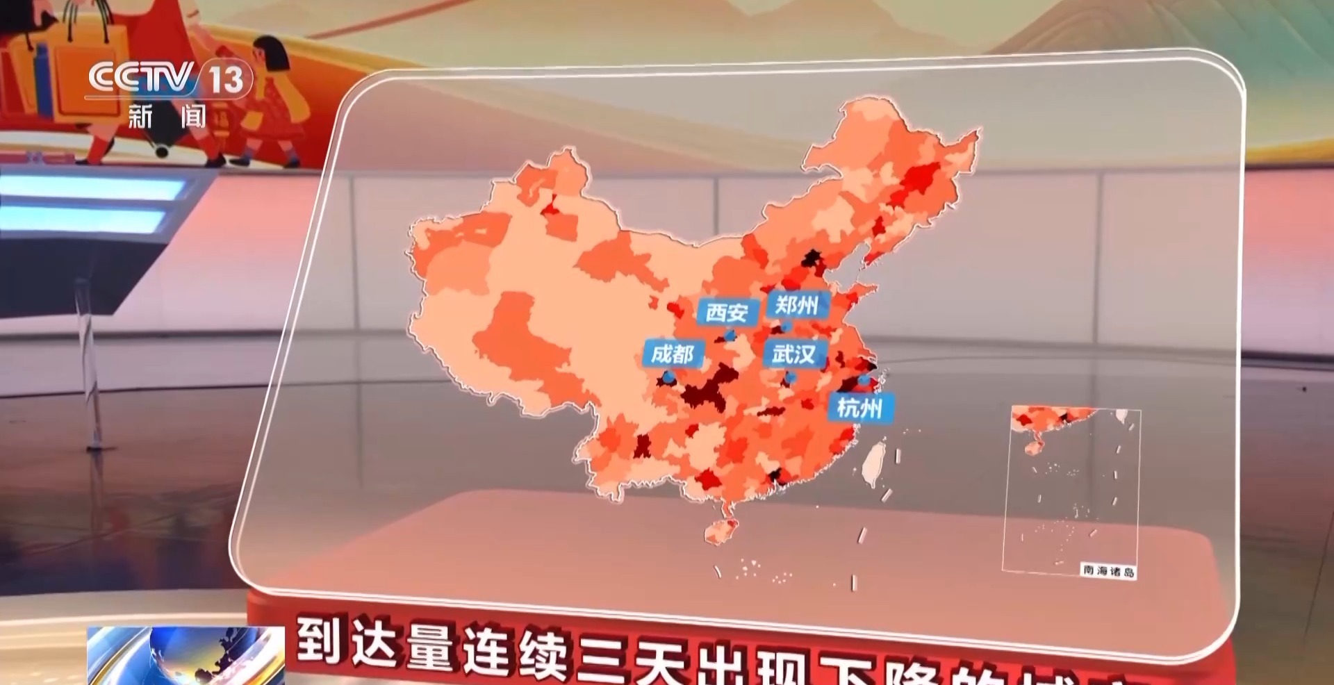 今日43個城市到達量較昨日下降