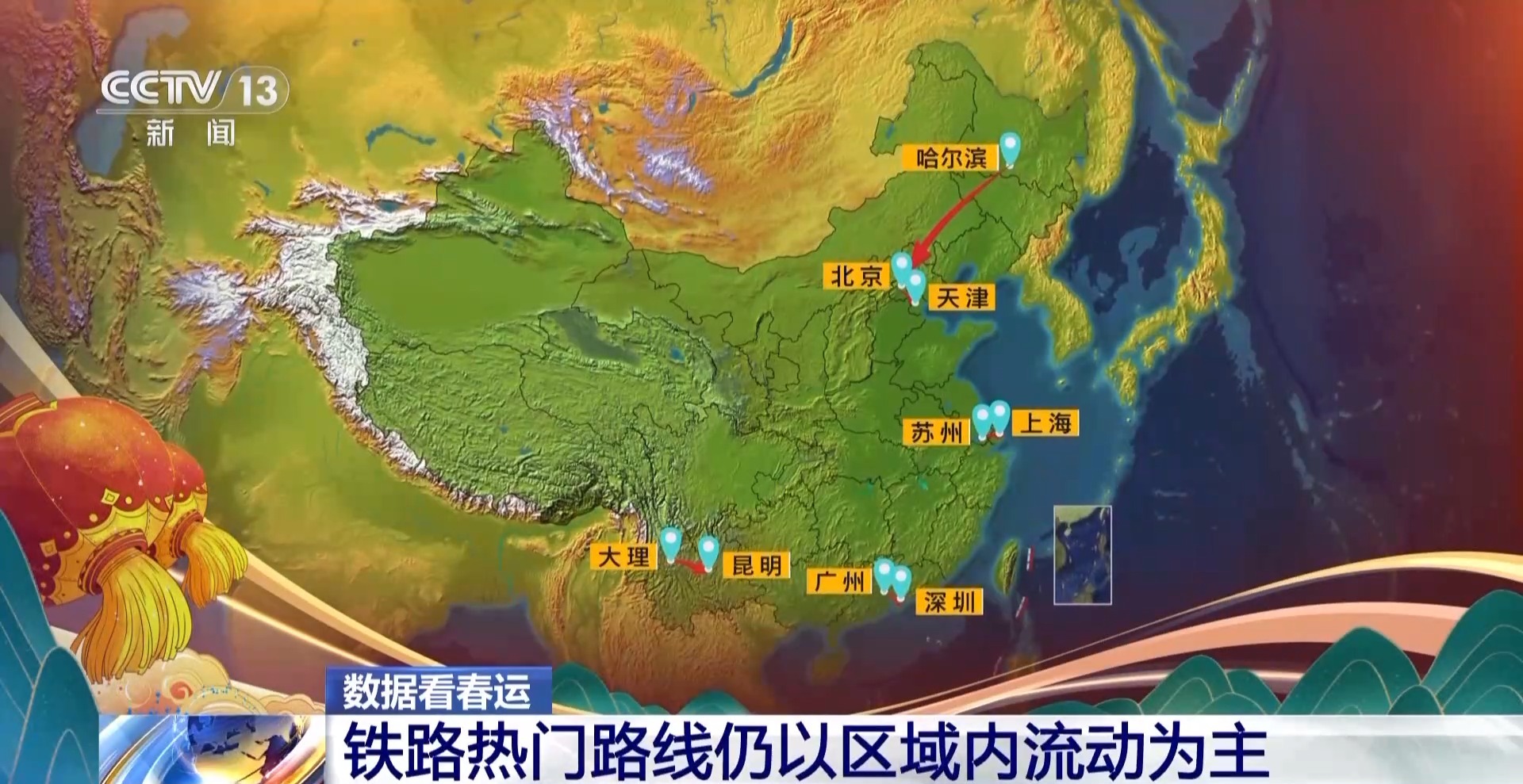今天是正月十二,春運返程的步伐仍在繼續(xù),坐火車出行的客流量在初八達到最高后,出現(xiàn)了逐日下降的趨勢,今天的鐵路客流量又將呈現(xiàn)怎樣的特點?我們通過春運熱力圖來感受一下。