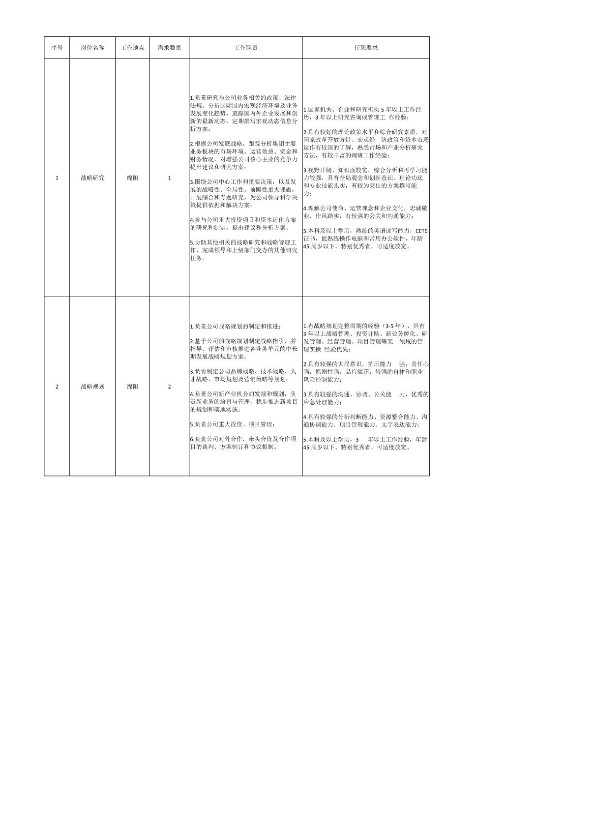 根據(jù)公司經營發(fā)展需要,面向社會公開招聘以下崗位:
