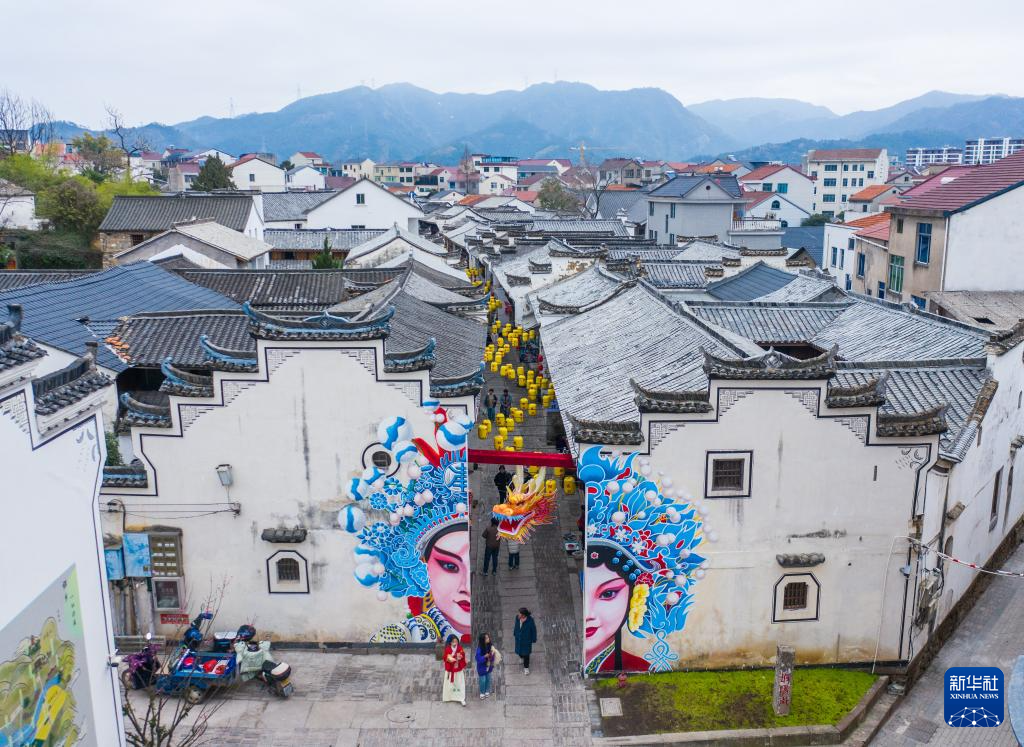 2月20日,游客在金華市金東區(qū)嶺下鎮(zhèn)坡陽古街上游覽(無人機(jī)照片)。