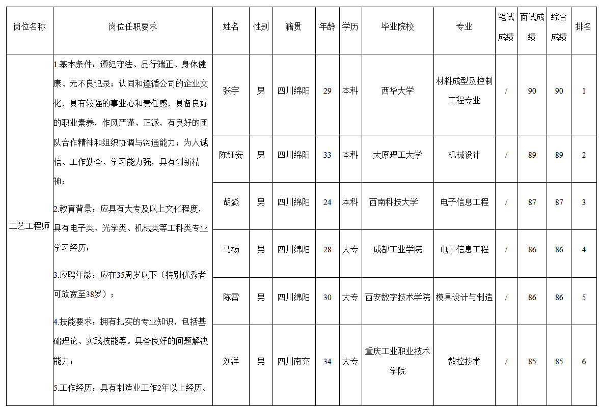根據(jù)四川九華光子通信技術(shù)有限公司發(fā)布的招聘公告及招聘相關(guān)規(guī)定,經(jīng)面試程序,現(xiàn)將面試成績(jī)予以公示。