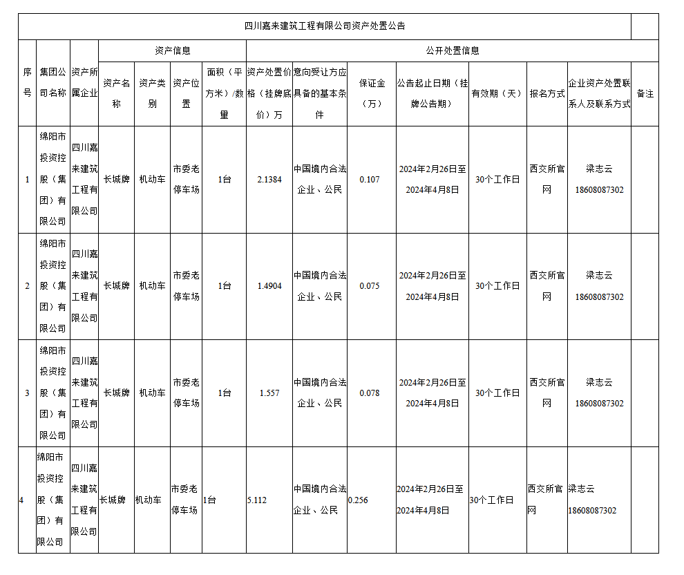 四川嘉來建筑工程有限公司資產(chǎn)處置公告