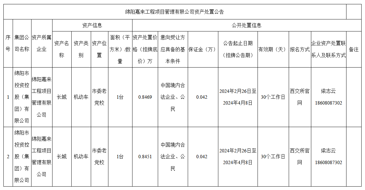 綿陽(yáng)市綿投商業(yè)運(yùn)營(yíng)管理有限責(zé)任公司資產(chǎn)處置公告