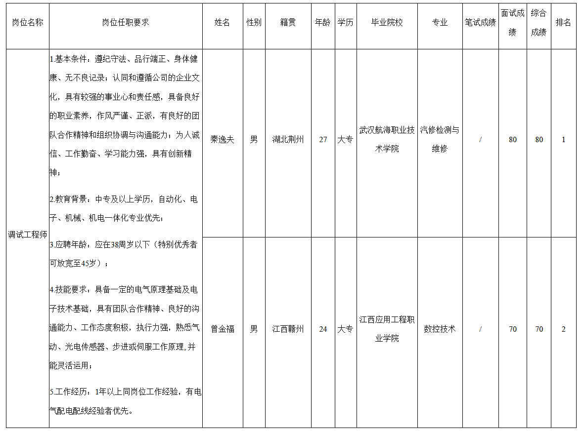 根據(jù)深圳九州光電子技術(shù)有限公司發(fā)布的招聘公告及招聘相關(guān)規(guī)定,經(jīng)面試程序,現(xiàn)將面試成績(jī)予以公示。