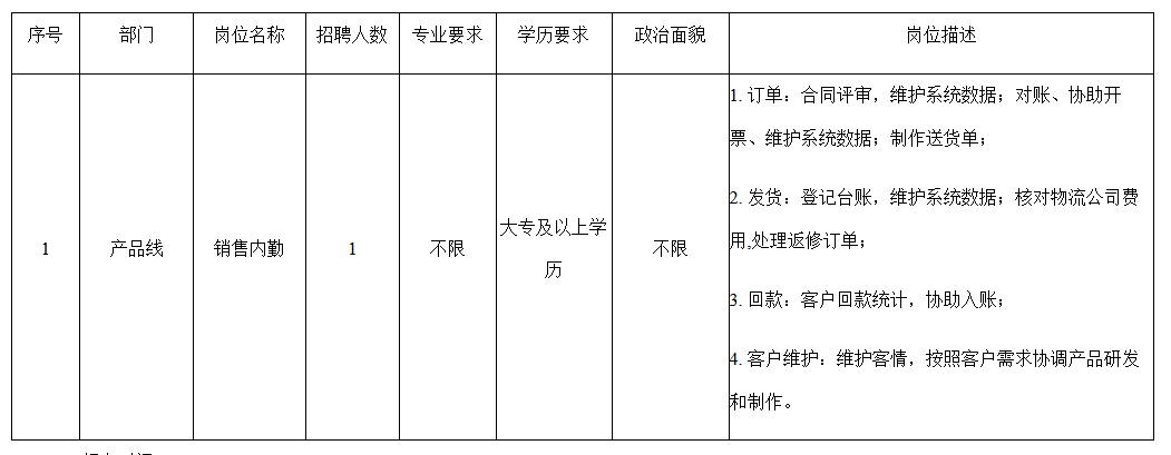 5.工作經(jīng)歷:1年以上相關(guān)工作經(jīng)驗(yàn)。