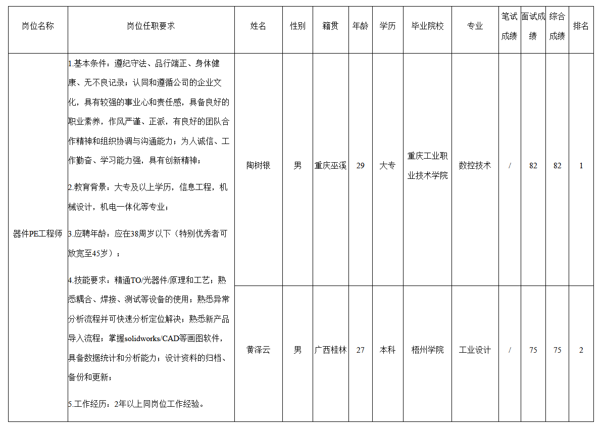根據(jù)深圳九州光電子技術(shù)有限公司發(fā)布的招聘公告及招聘相關(guān)規(guī)定,經(jīng)面試程序,現(xiàn)將面試成績(jī)予以公示。