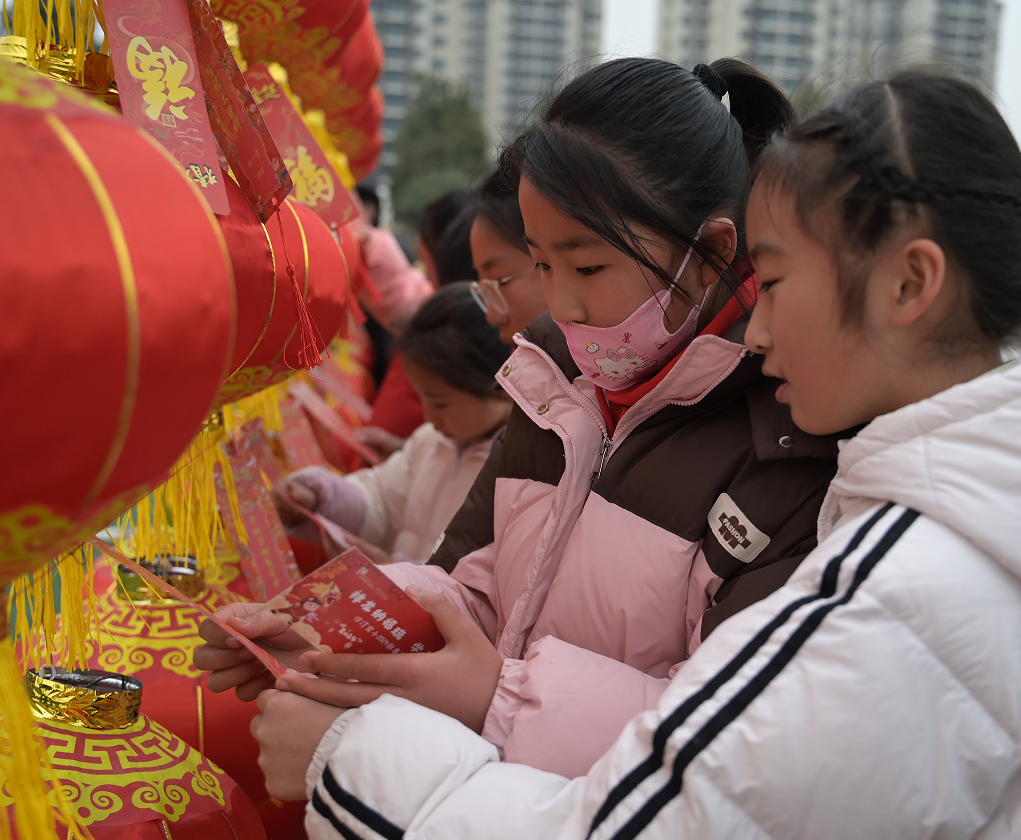 中國紅、龍元素、漢服飾、非遺文化,共同營造出國風濃郁、喜慶歡樂的校園迎新氛圍。萌萌的“小龍人”、腳踩高蹺的“氣球人”……熱情地和孩子們打著招呼,送著祝福。操場上,“魚躍龍門”“祥龍獻瑞”“龍行大運”“畫龍點睛”……一個個寓意美好、年味兒十足的趣味游園活動,讓孩子們興趣盎然。寫“福”字,猜燈謎,制作一個湯圓“表情包”,蒙上眼睛給龍貼眼睛……快樂的歡呼聲、助威聲此起彼伏,響徹校園。糖葫蘆、棉花糖、藝術氣球、糖畫的攤位旁更是人頭攢動,擠滿了來兌換獎品的孩子們。非遺匠人們靈動的手指上下飛舞,左右穿梭,頃刻間,一條糖做的“龍”、一串冰糖葫蘆、一頂氣球捏成的帽子……神奇地握在了孩子們的手中,驚嘆的眼神后,“耶”的呼喊聲便從這里響起。