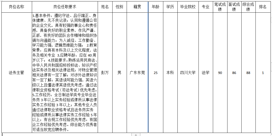 根據(jù)深圳市九州電器有限公司發(fā)布的招聘公告及招聘相關(guān)規(guī)定,經(jīng)筆試、面試等程序,現(xiàn)將筆試(面試)成績(jī)予以公示。