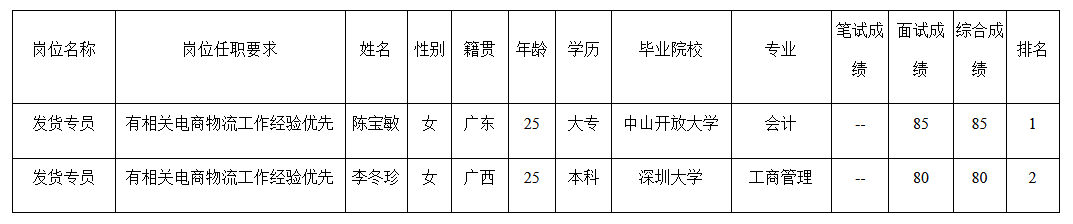 根據(jù)長虹美菱日電科技有限公司發(fā)布的招聘公告及招聘相關(guān)規(guī)定,經(jīng)面試程序,現(xiàn)將面試成績予以公示。