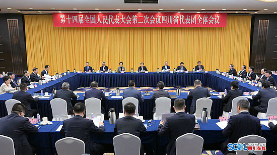 3月4日下午,十四屆全國人大二次會議四川代表團(tuán)在駐地舉行全體會議。省委書記、省人大常委會主任、代表團(tuán)團(tuán)長王曉暉主持會議。省委副書記、省長、代表團(tuán)副團(tuán)長黃強(qiáng),省委副書記、成都市委書記、代表團(tuán)副團(tuán)長施小琳出席。
