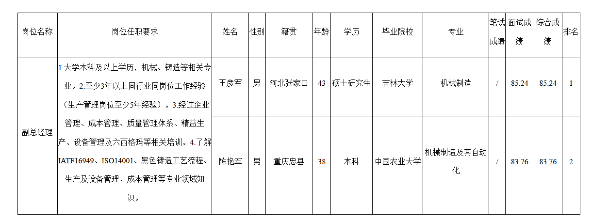 根據(jù)四川波鴻實(shí)業(yè)有限公司發(fā)布的招聘公告及招聘相關(guān)規(guī)定,經(jīng)面試后,現(xiàn)將四川威斯卡特副總經(jīng)理面試成績予以公示。
