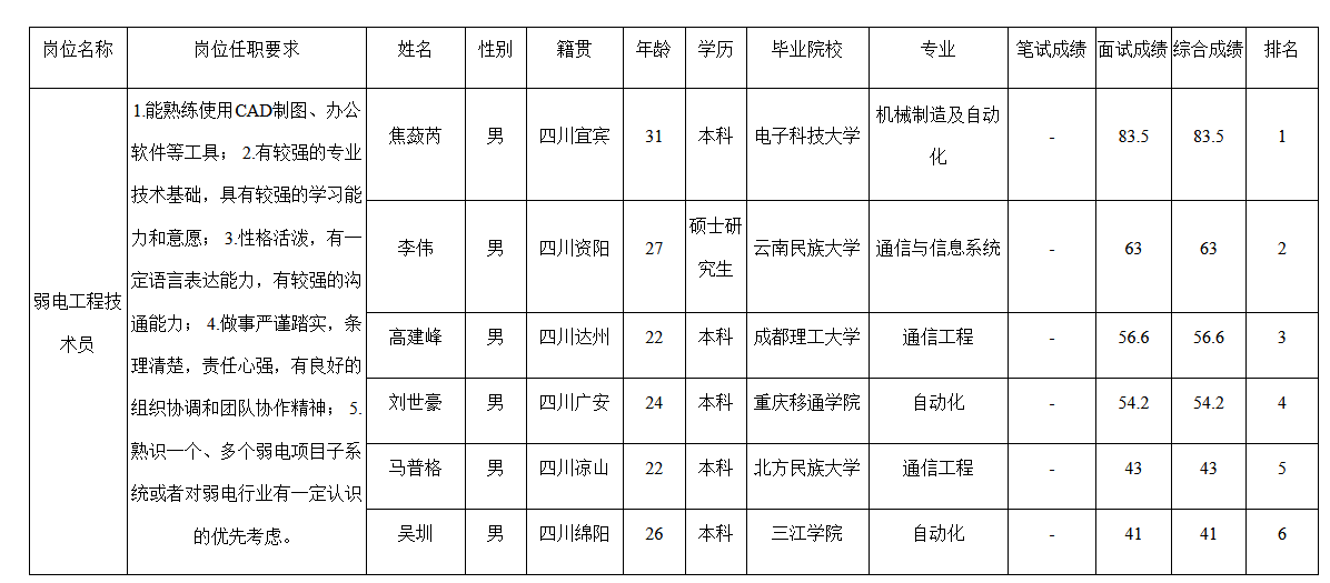 根據(jù)四川九州視訊科技有限責(zé)任公司發(fā)布的招聘公告及招聘相關(guān)規(guī)定,經(jīng)筆試、面試等程序,現(xiàn)將筆試(面試)成績(jī)予以公示。