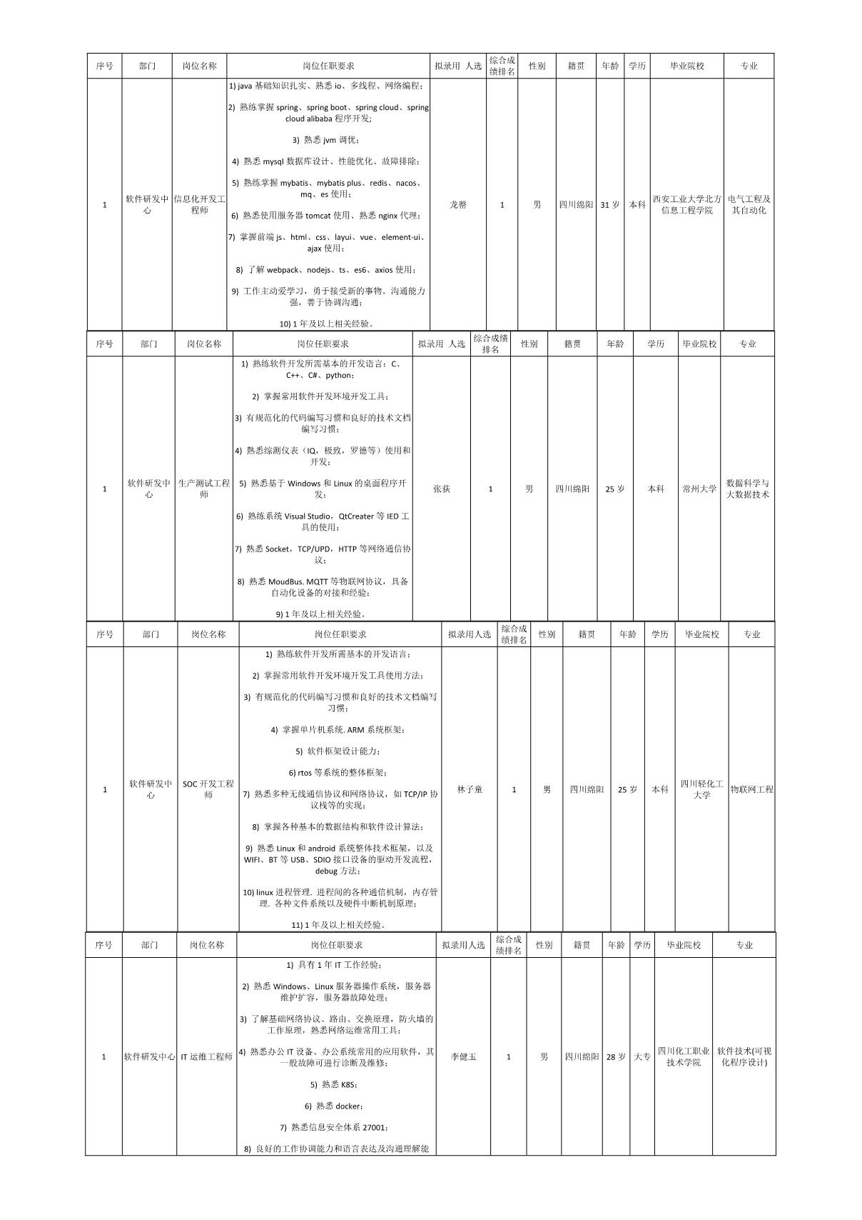根據四川愛聯(lián)科技股份有限公司發(fā)布的招聘公告及招聘相關規(guī)定,經筆試、面試、考察、體檢等程序,擬錄用龍罄、張荻、林子童、李健玉4名同志到軟件研發(fā)中心任職軟件開發(fā),現(xiàn)予以公示,具體情況如下: