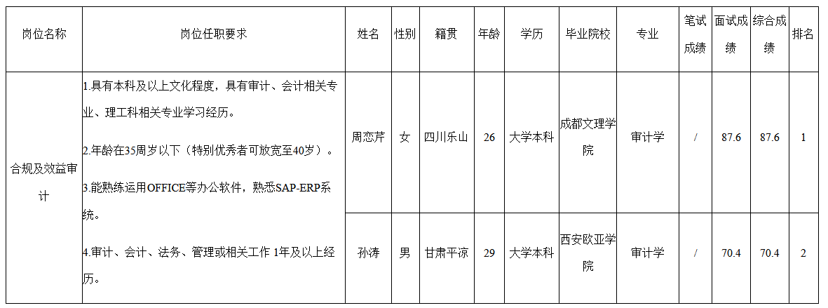 根據(jù)長(zhǎng)虹電源公司發(fā)布的軍民融合BG審計(jì)分部公開(kāi)招聘公告及招聘相關(guān)規(guī)定,經(jīng)筆試、面試等程序現(xiàn)將筆試(面試)成績(jī)予以公示。