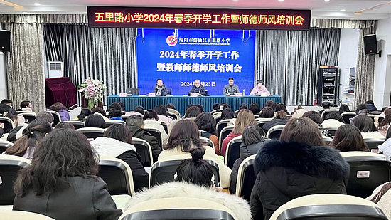 綿陽新聞網(wǎng)訊 春風(fēng)來掃千山雪,歸留萬國(guó)便繁華。2月23日上午,游仙區(qū)五里路小學(xué)組織召開了2024年春季學(xué)期開學(xué)工作暨教師師德師風(fēng)培訓(xùn)會(huì),就新學(xué)期學(xué)校工作目標(biāo)和各部門籌備工作作出了具體部署和安排。校長(zhǎng)任天成主持會(huì)議并講話,全體教職工參加會(huì)議。