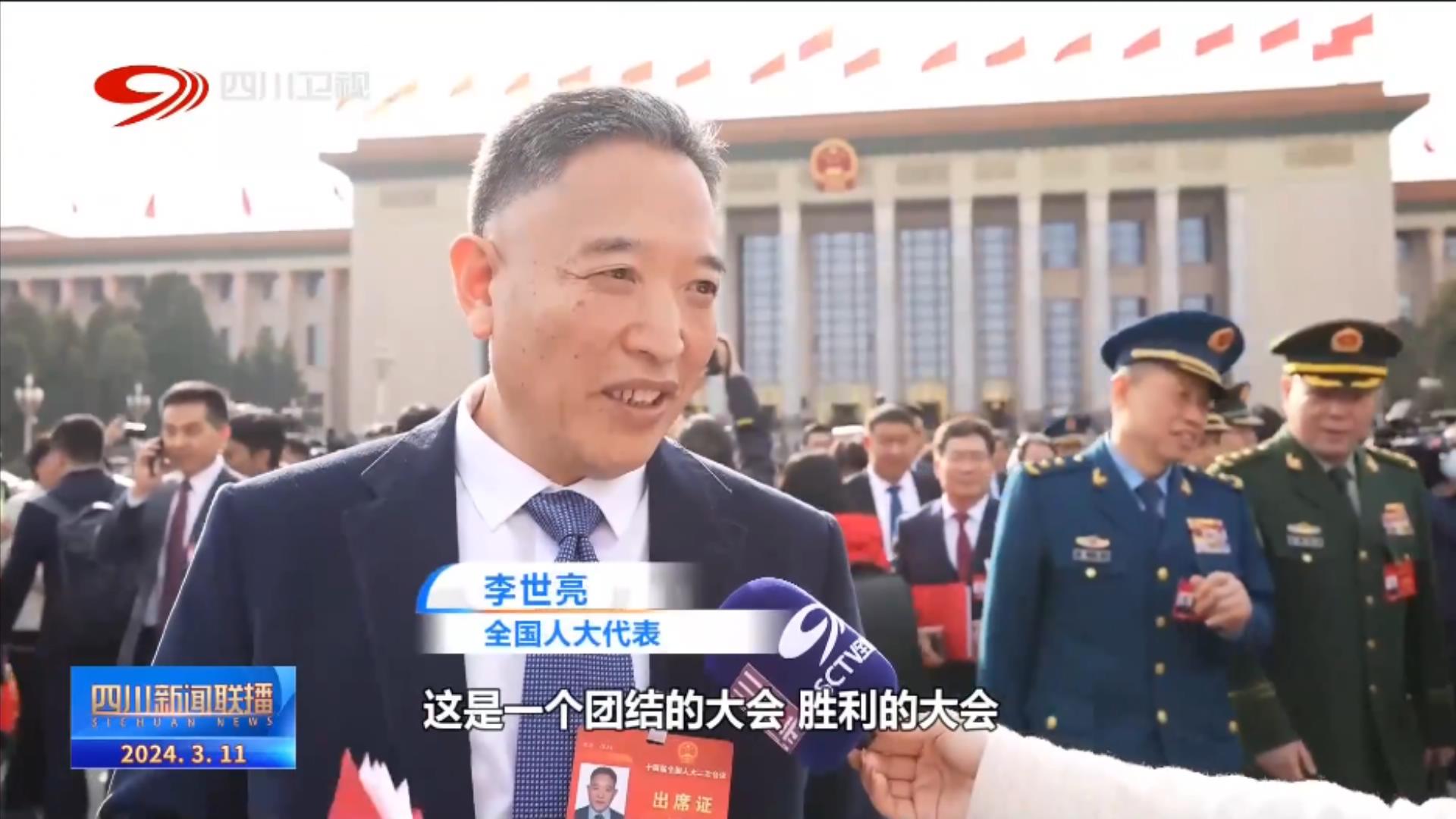 全國(guó)人大代表 李世亮:心情非常激動(dòng),這是一個(gè)團(tuán)結(jié)的大會(huì),勝利的大會(huì),目標(biāo)明確的大會(huì),鼓勵(lì)大家?jiàn)^進(jìn)的大會(huì),那么目標(biāo)已經(jīng)確定了,每個(gè)代表就回去貫徹落實(shí)。