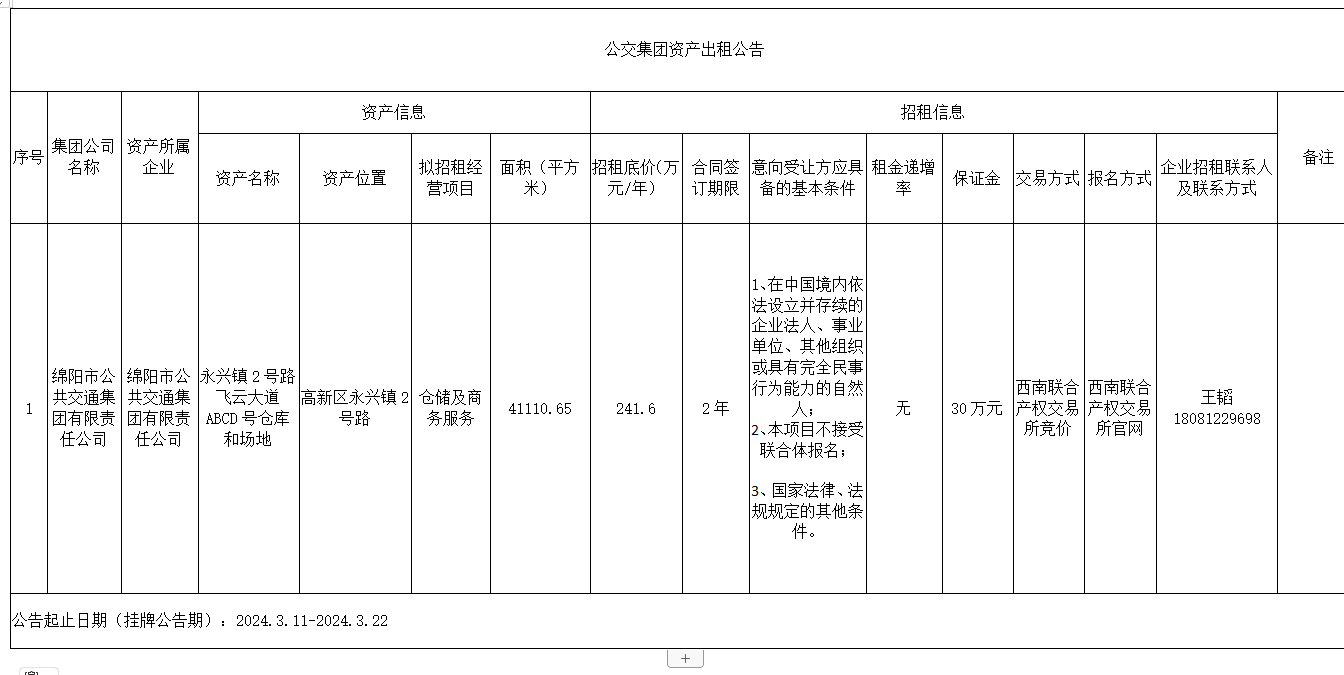 公交集團(tuán)資產(chǎn)出租公告
