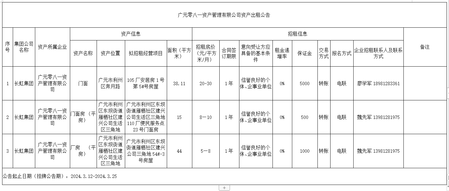 廣元零八一資產(chǎn)管理有限公司資產(chǎn)出租公告