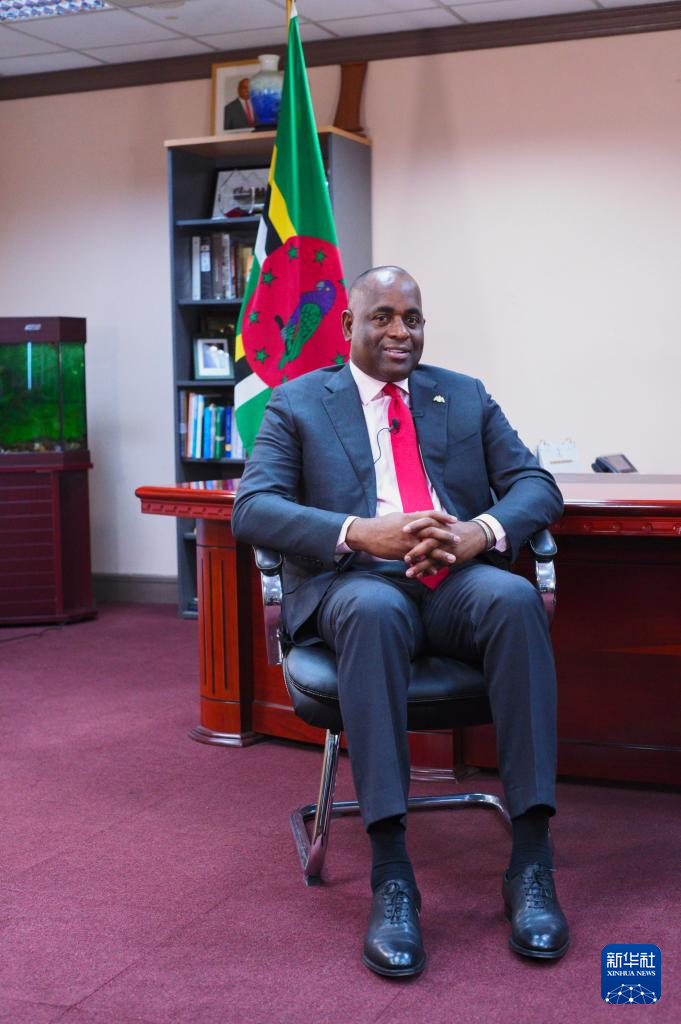3月4日,多米尼克總理斯凱里特在首都羅索的總理辦公室接受新華社記者獨(dú)家專訪。新華社記者 趙凱 攝