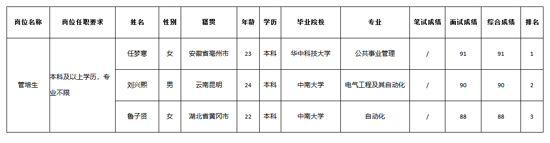 根據四川波鴻實業(yè)有限公司發(fā)布的招聘公告及招聘相關規(guī)定,經面試后,現將威斯卡特工業(yè)(中國)有限公司管培生成績予以公示。