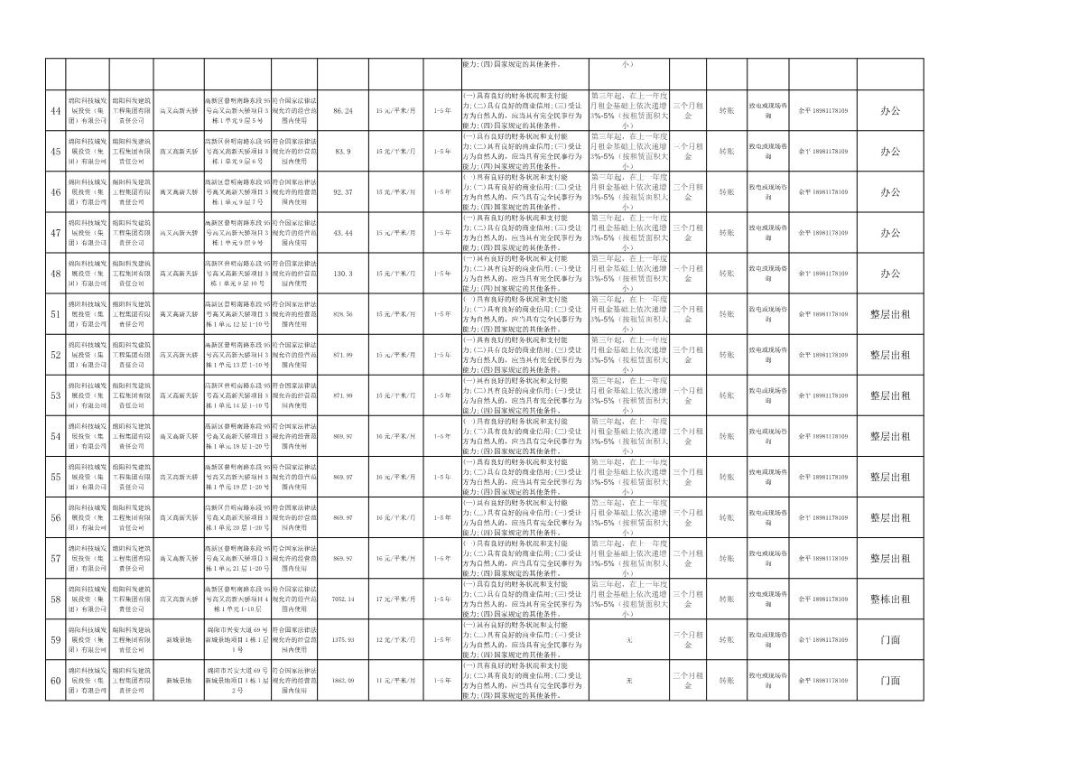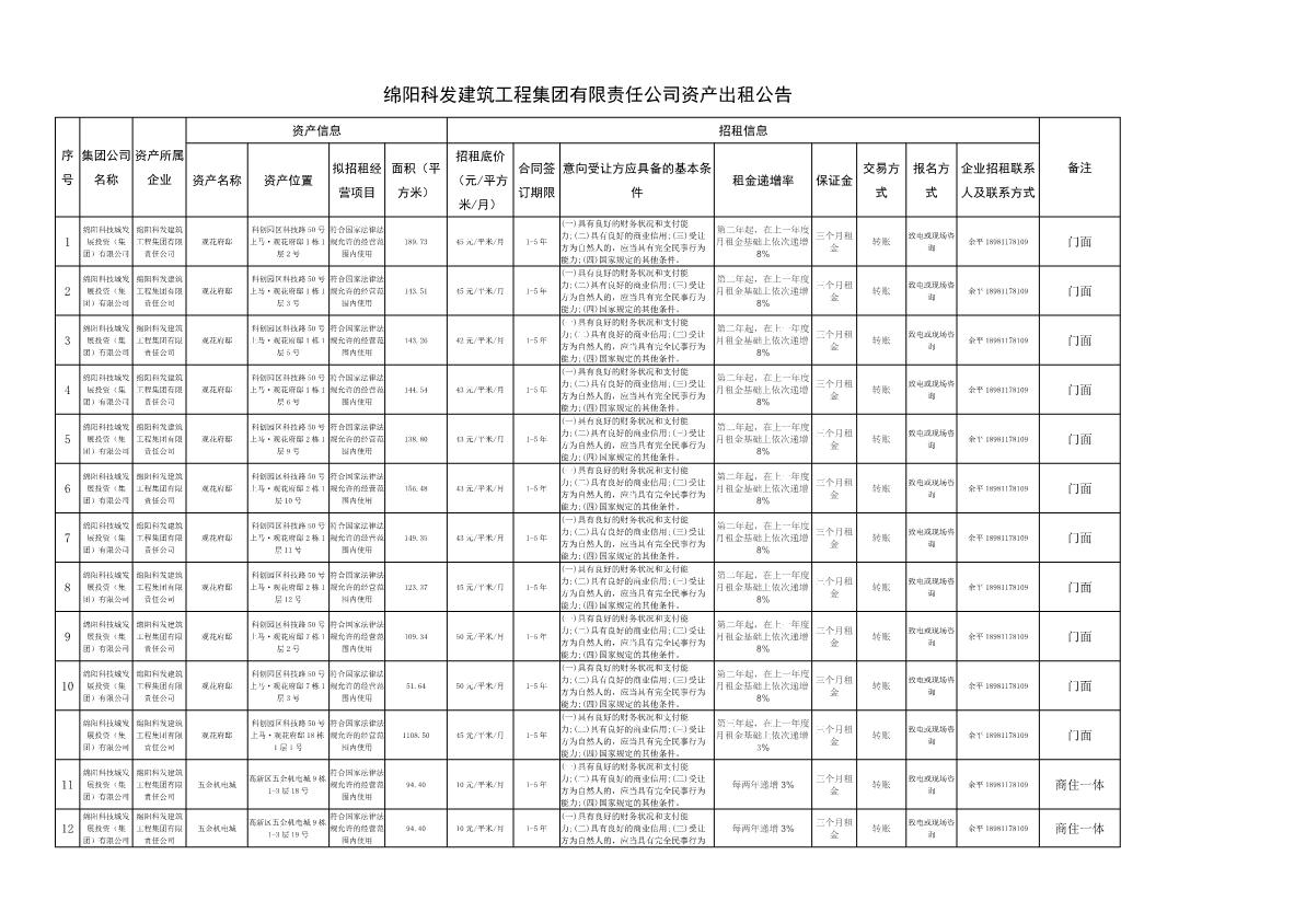 綿陽科發(fā)建筑工程集團有限責任公司資產(chǎn)出租公告