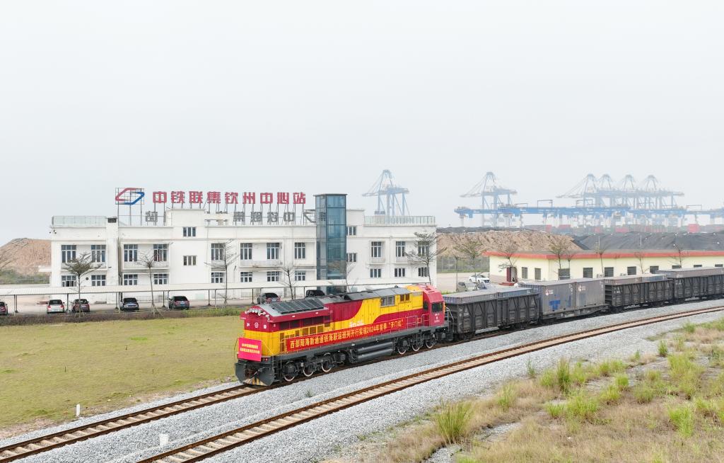 3月17日上午,一列滿載緬甸黑芝麻、海南椰子汁、廣西白糖等貨物的海鐵聯(lián)運(yùn)班列,從欽州鐵路集裝箱中心站緩緩發(fā)出駛向四川城廂站。這是2024年西部陸海新通道開行的第2000列海鐵聯(lián)運(yùn)班列,同比增長16.8%,提前14天完成一季度班列開行任務(wù)。