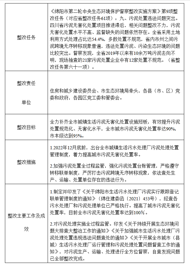 根據(jù)《四川省生態(tài)環(huán)境保護督察問題整改銷號辦法(2023年修訂)》有關要求,綿陽市第二輪中央生態(tài)環(huán)境保護督察第九項(對應省整改任務第六十一項)整改任務已整改完成,并通過驗收,擬按程序?qū)嵤╀N號?,F(xiàn)將該項問題整改驗收情況予以公示,公示期為2024年3月18日至3月29日。公示期間如有異議,請實名書面向綿陽市住房和城鄉(xiāng)建設委員會提出。聯(lián)系電話:0816-2224488;郵寄地址:綿陽市園藝山云泉南街2號集中辦公區(qū)6A。