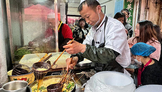 清晨6點多,天水市秦州區(qū)文廟旁的小院里已經(jīng)排起長隊。當(dāng)紅“打卡點”海英麻辣燙店內(nèi),10多位店員切菜、串菜忙個不停。“現(xiàn)在每天接待700多人,夜宵成正餐了。”老板娘哈海英啞著嗓子說。