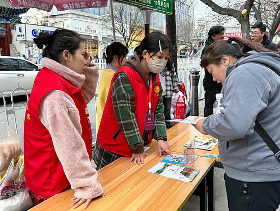 在天水市秦州區(qū)的街道一側(cè),志愿者為前來品嘗天水麻辣燙的外地游客答疑解惑。新華社記者 文靜 攝