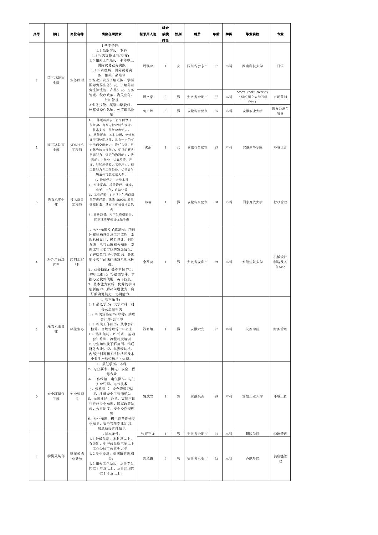 根據(jù)長虹美菱股份有限公司發(fā)布的招聘公告及招聘相關(guān)規(guī)定,經(jīng)面試、體檢等程序,擬錄用周慧琴同志到國際冰洗事業(yè)部等部門工作,現(xiàn)予以公示,具體情況如下: