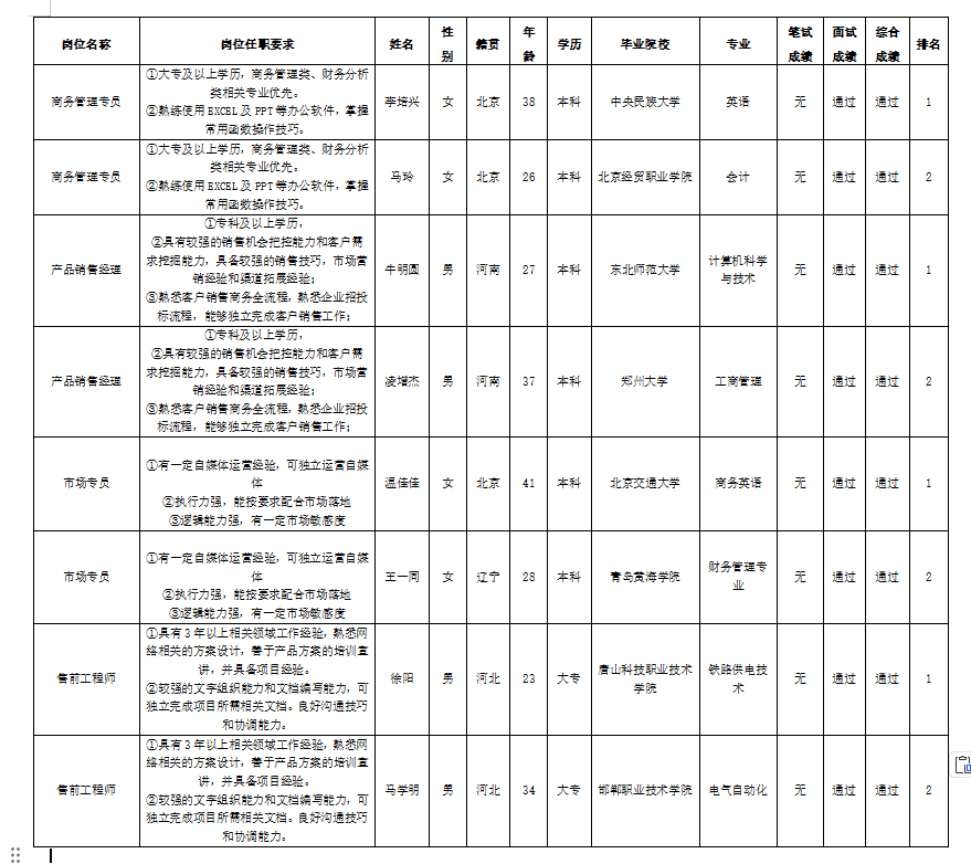根據(jù)四川長(zhǎng)虹佳華信息產(chǎn)品有限責(zé)任公司發(fā)布的招聘公告及招聘相關(guān)規(guī)定,經(jīng)筆試、面試等程序,現(xiàn)將筆試(面試)成績(jī)予以公示。