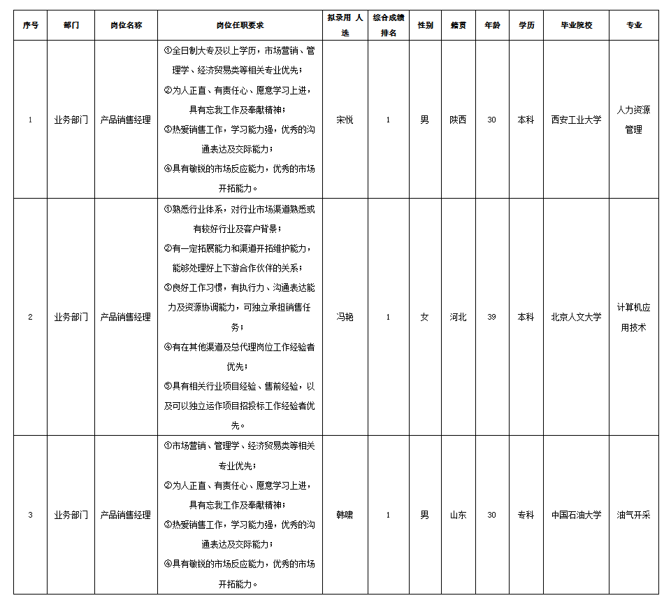根據四川長虹佳華信息產品有限責任公司發(fā)布的招聘公告及招聘相關規(guī)定,經面試、考察、體檢等程序,擬錄用宋悅、馮艷、韓嘯同志到四川長虹佳華信息產品有限責任公司工作,現予以公示,具體情況如下: