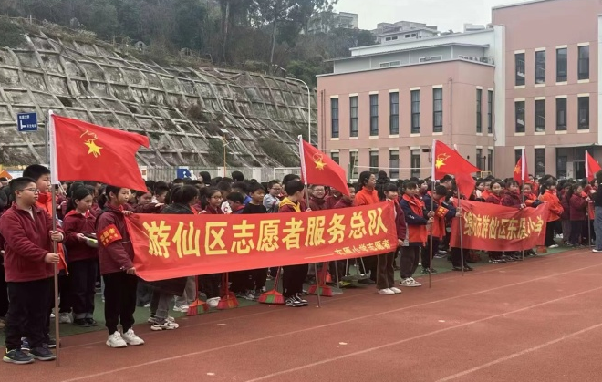 為了加強(qiáng)學(xué)校勞動(dòng)教育課程與德育課程的有機(jī)融合,推動(dòng)志愿者服務(wù)活動(dòng),培養(yǎng)隊(duì)員們的責(zé)任心,同時(shí)豐富隊(duì)員們的課余生活,增進(jìn)團(tuán)隊(duì)精神,2024年3月18日下午,游仙區(qū)東原小學(xué)大隊(duì)部組織開展了以“共創(chuàng)文明城 我們?cè)谛袆?dòng)”為主題的志愿者實(shí)踐活動(dòng)。