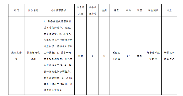 根據(jù)四川華豐科技股份公司發(fā)布的招聘公告及招聘相關(guān)規(guī)定,經(jīng)筆試、面試、考察、體檢等程序,擬錄用孫虓同志到四川華豐科技股份有限公司工作,現(xiàn)予以公示,具體情況如下: