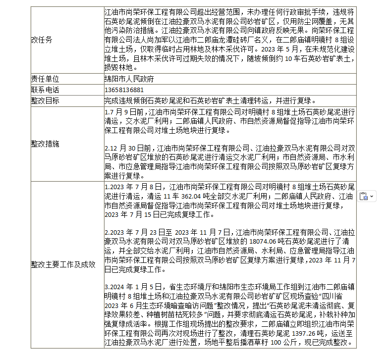 長江生態(tài)環(huán)境問題整改銷號信息公開表