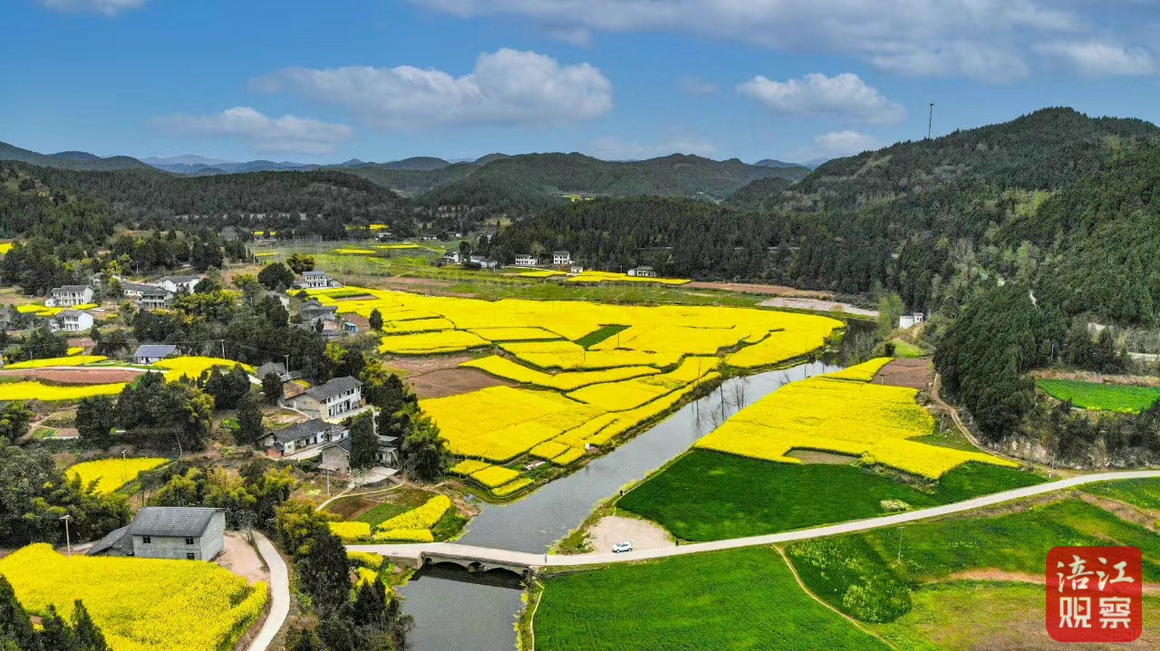 近日,鹽亭縣黃甸鎮(zhèn)萬畝油菜花競相開放,美麗的黃色花海與村落、道路、河堤相映成趣,處處生機盎然,繪就了一幅鄉(xiāng)村振興的美麗畫卷。