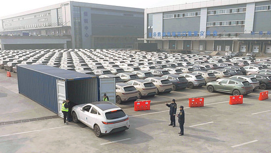 重慶海關關員驗放出口新能源汽車(成都海關供圖)